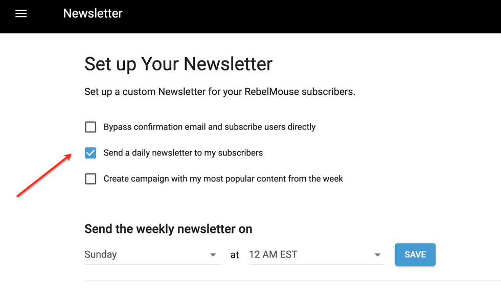 You can set up recurring newsletters right from within RebelMouse. Here's a step-by-step guide of how to set up the feature correctly.