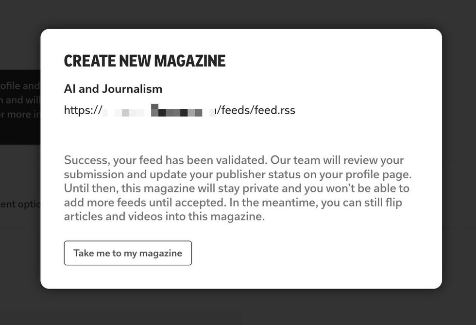 Click Take me to my magazine. Then, you will be directed to a page where you can add your RSS Feed.