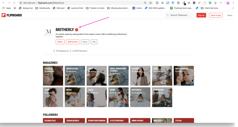 Note: Your account on Flipboard will only be verified with a check mark if your social accounts are verified as well. Here's what a verified account looks like: