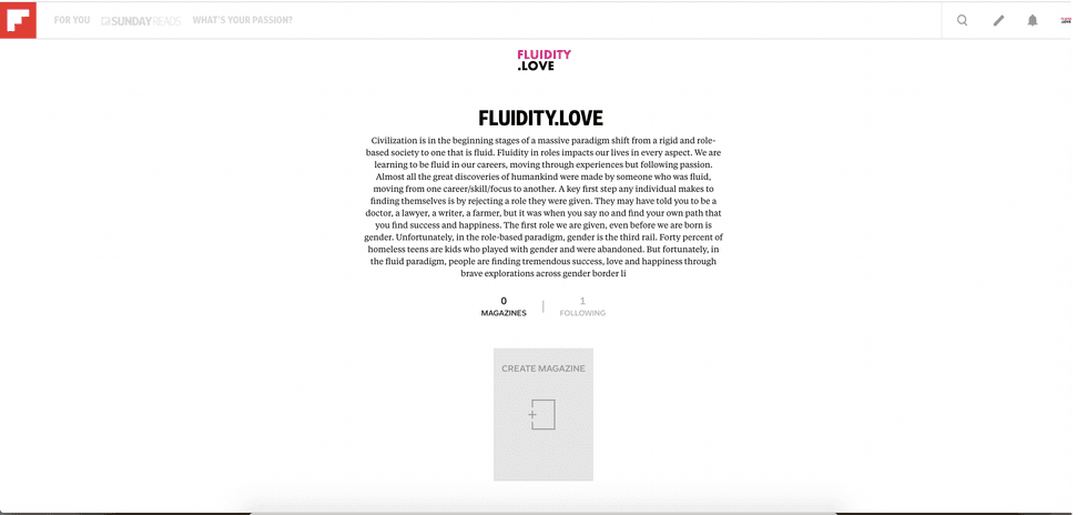 Flipboard magazines are packages or collections of your content that you can create through your publisher profile. Magazines can either be powered by RSS Feeds, or you can manually add content to them from anywhere on the web by using their Google Chrome extension and/or bookmarklet.