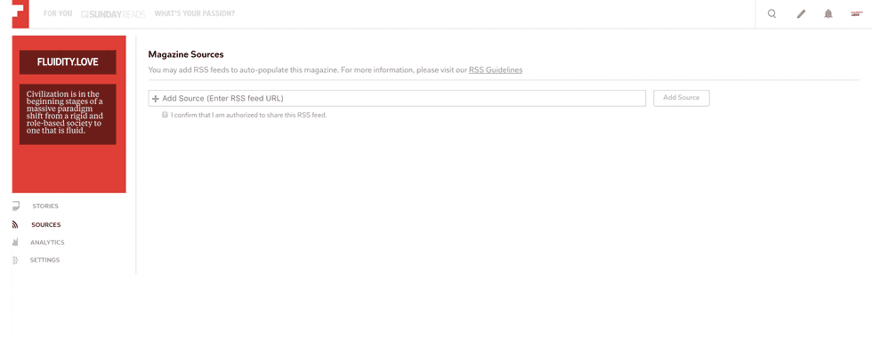 Side note: The Storyboards feature isn’t open to all Flipboard creators. Publishers are encouraged to establish their presence on the platform through brand consistency and frequent publication through an RSS Feed first.