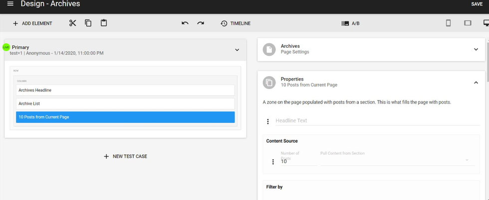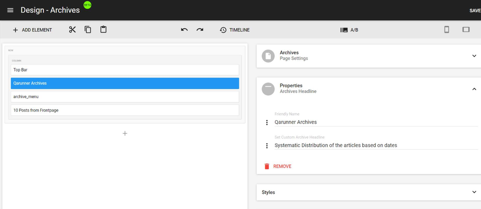 Once there, you will see the following three elements available to use within your Archives: