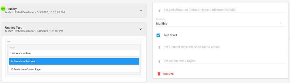 Element Class for Show Menu Action: You can set the class for your archive list using this property.