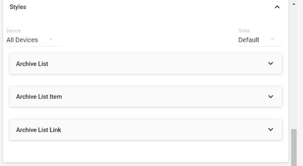 For Archive List, you can style the article, headline, colors, and other elements to match the rest of your site. The following styles are available: