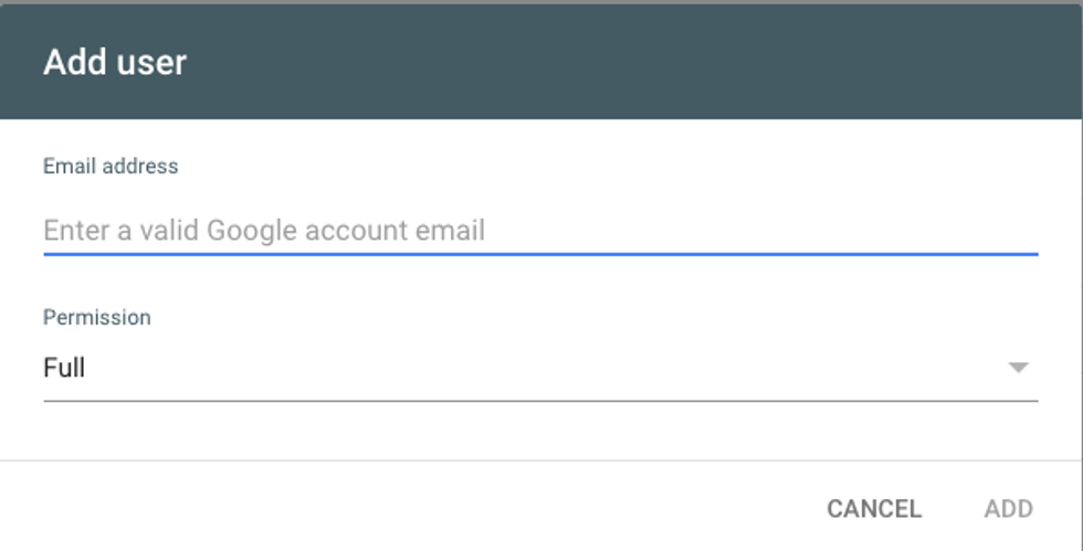 Enter the new user's email address in the text field, and select their permission level. Finally, click Add.