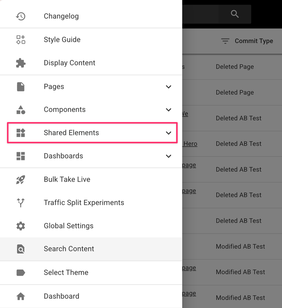 Once Layout & Design Tool has loaded, select the hamburger menu (☰) again. Click on Shared Elements.