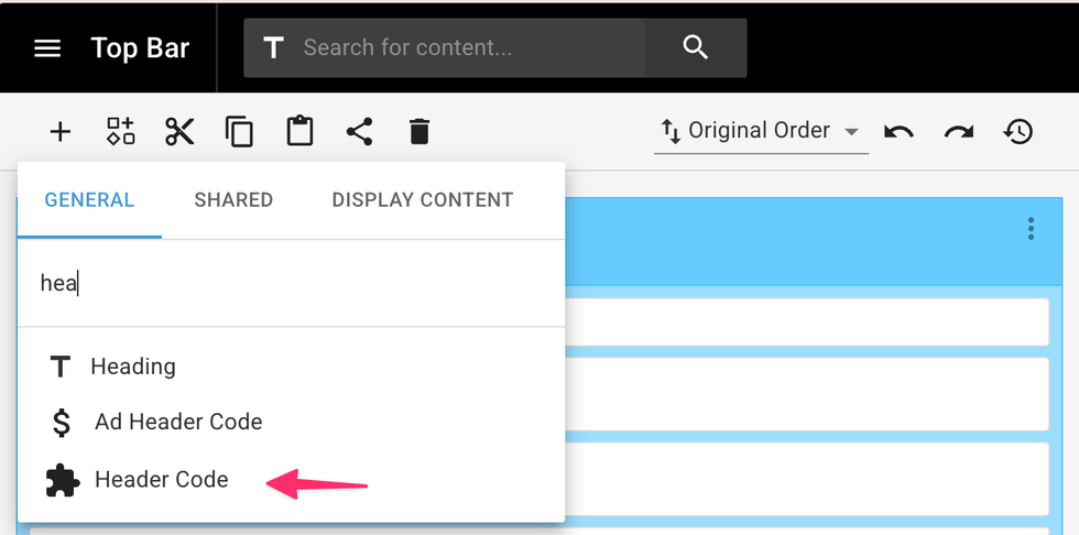 Give your Header Code element a name. Then, paste the code you copied from Google Search Console in the HTML Code text field.