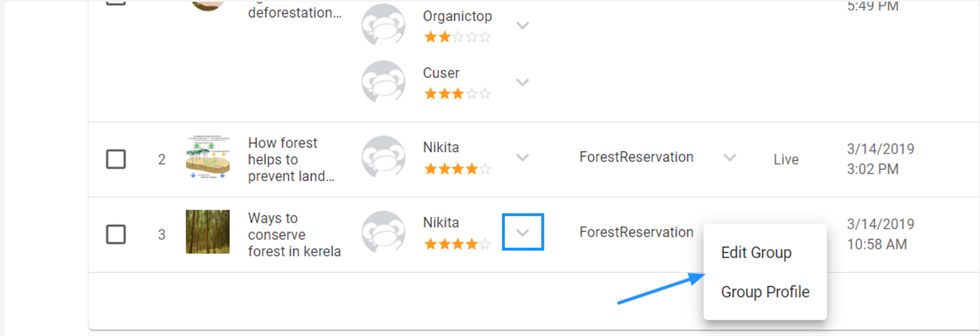 Additionally, you can also filter by author or group by clicking on the respective name, and you can even change the star ratings of users.