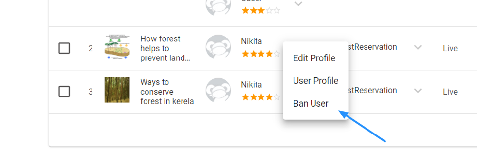Click the same icon next to a user's name to edit or ban a user's profile: