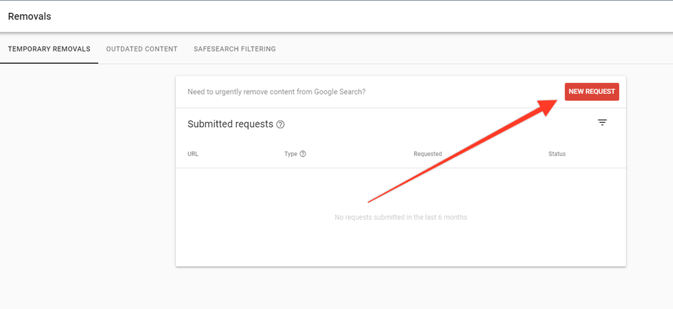 In the New Request pop-up window, you have the option to decide between two different types of removals, according to Google: