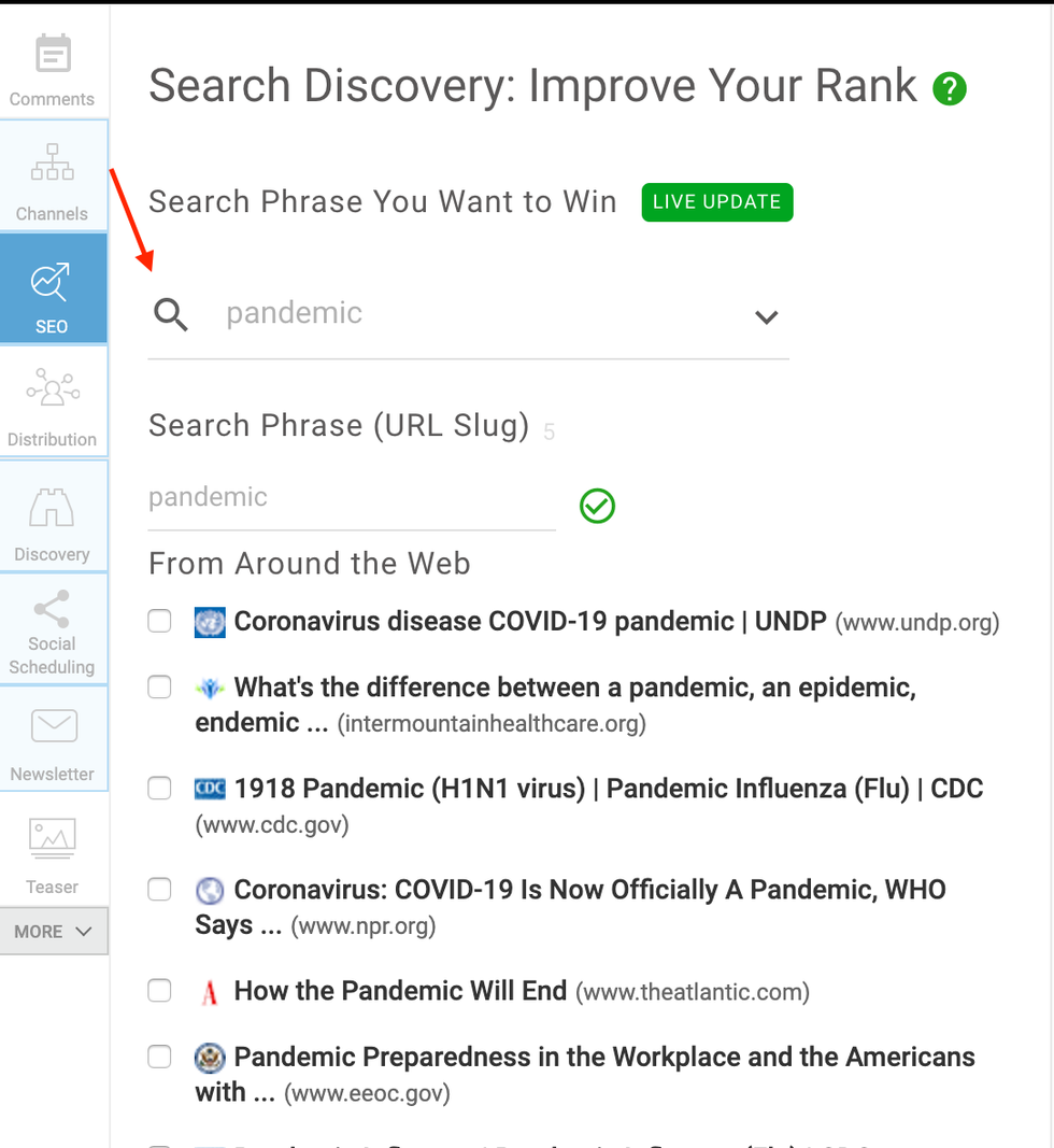 Scanning these phrases and identifying any content you either already have published or plan to create is a great way to take advantage of a hot topic. If you're publishing on RebelMouse, make sure that the phrase listed in Trending Searches matches what you've selected in the Search Phrases You Want to Win field of Entry Editor's SEO tab.