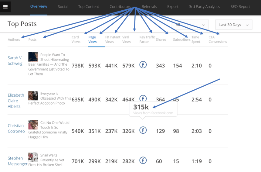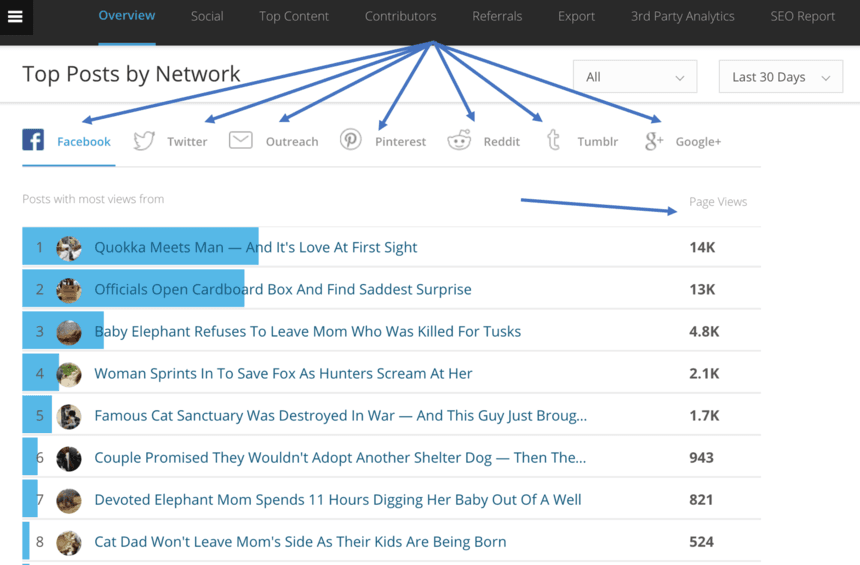 - Note: this is the not the total pageviews for that post, just the amount of pageviews that has been generated by that particular social network.