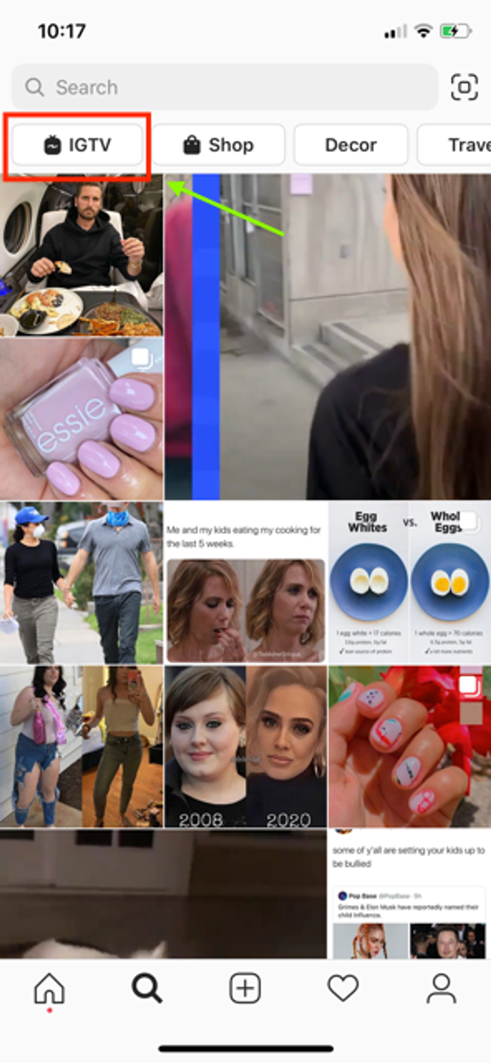 One of Instagram's most popular features is IGTV. To access IGTV, tap the IGTV button located in the navigation bar of your search page.