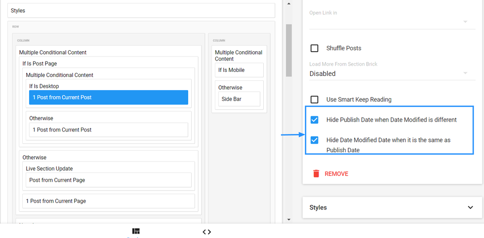 - Hide Date Modified Date When It Is the Same as Publish Date: If an article is updated on the same day it's published, this option ensures that the original publish date is displayed, and will not show that the article was modified.