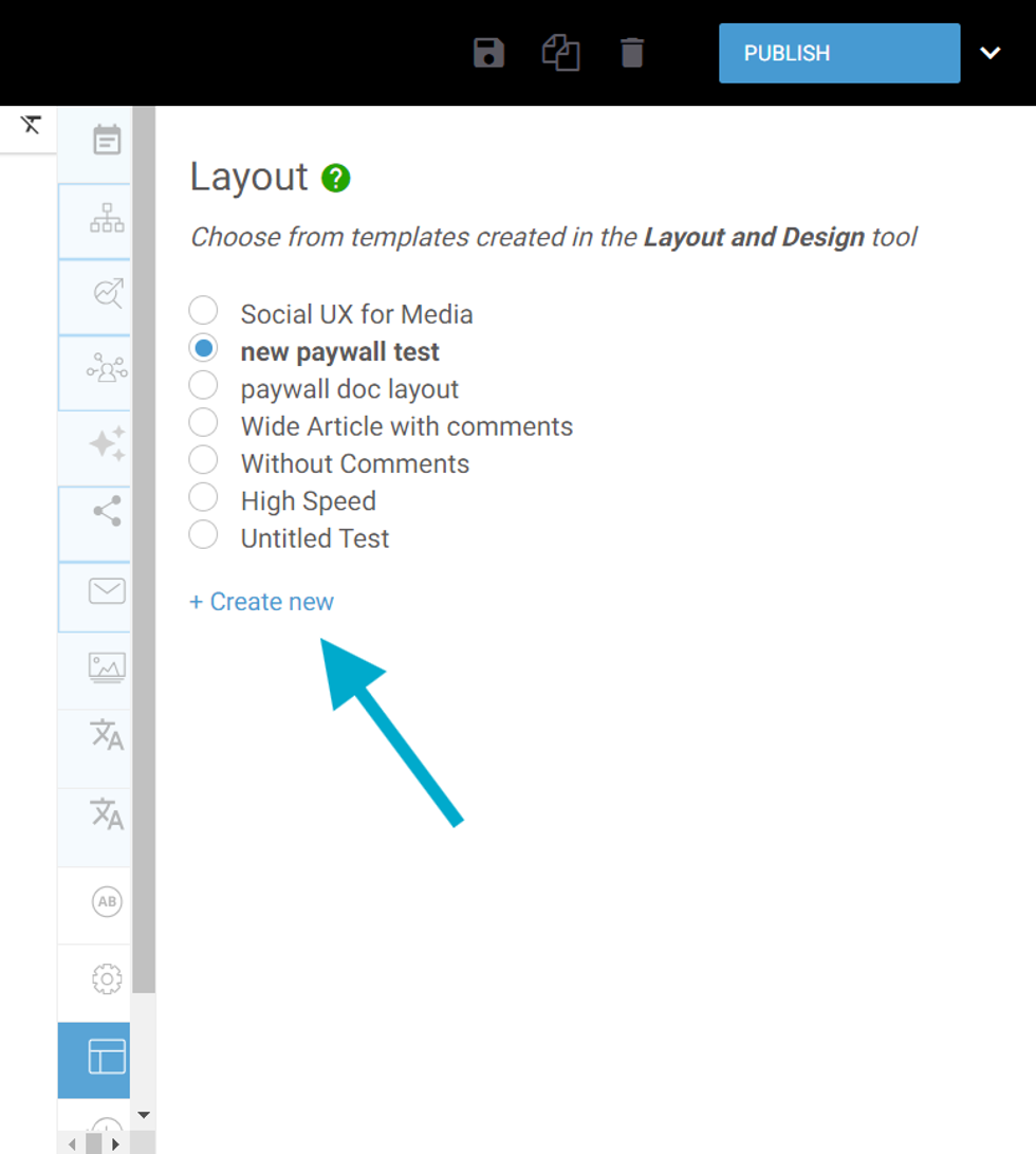 Clicking on "Create New" will redirect you to the Layout and Design tool where you can create new layouts.