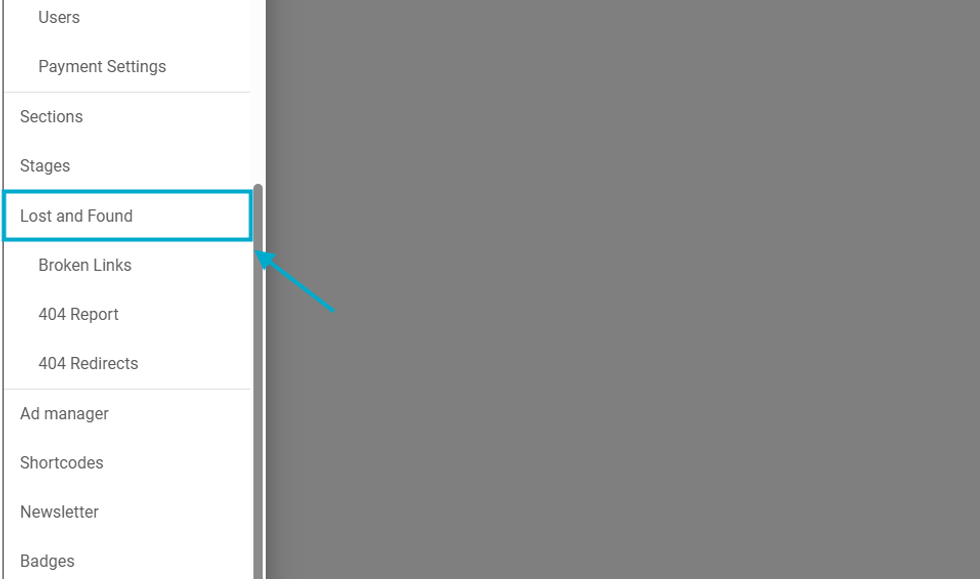 You can find the Lost & Found Dashboard in your site's hamburger menu (☰) or go straight to /r/dashboard/404_report in your browser's URL bar.