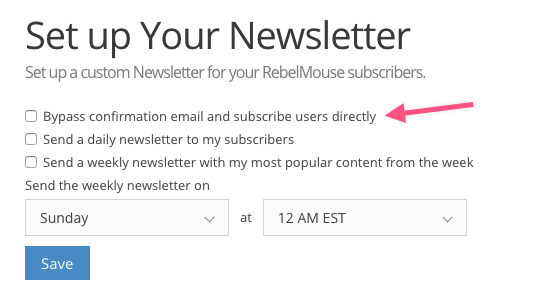 2) The first checkbox you'll see is the one you'll want to check: "Bypass confirmation email and subscribe users directly."