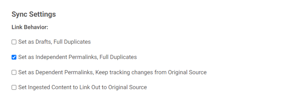 - Set Ingested Content to Link Out to Original Source: Publishes the post directly to the section you choose. Creates a full duplicate, but it directly links out to the original post when clicked on.