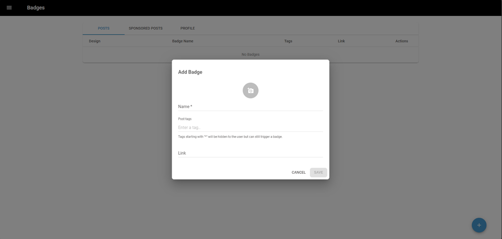 To create a post badge, click the “+” button at the bottom of the dashboard.