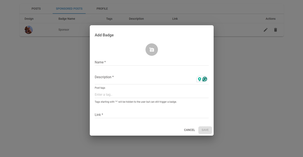 Similarly with the Posts badges, the Sponsored Posts is a tab to relate the badges for sponsors you will allow on your site. You can create the badge and assign it to any post that might be sponsored.