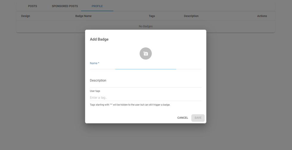 There are 3 tabs for Badges: Posts, Sponsored Posts and Profile.