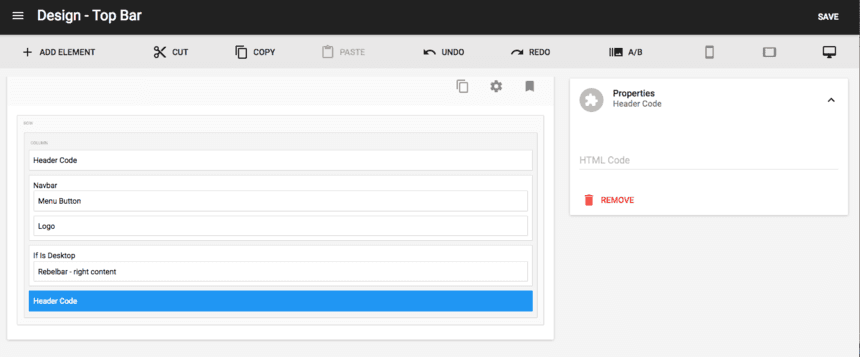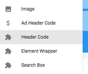Go to the Top Bar page and add the element 'Header Code':