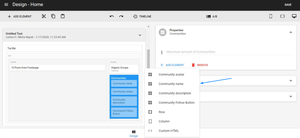 Once you're done placing your elements and styling them, save your changes and check out the results! Here's an example of how the Communities element can look on the front end: