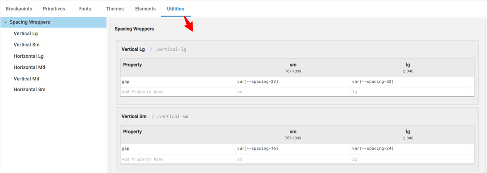 You can add a new utility by clicking “+ Add Utility.” From there, you can update the utility’s name and the CSS class associated with it. It will add blank property fields where you can define the CSS properties and their values for each breakpoint.