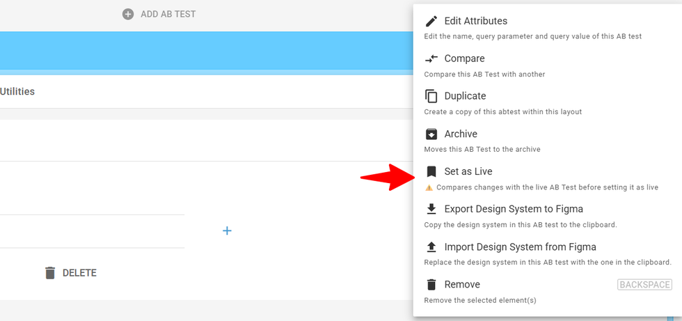 When you click Set AB Live, a comparison view opens showing the current live version alongside your A/B test. Review the updates, and once you’re happy, save the changes to push the new designs live.