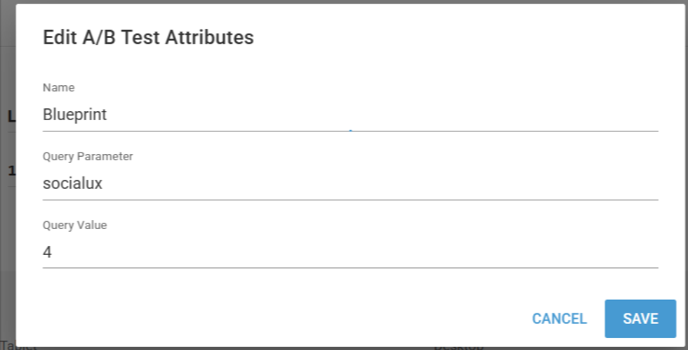 You can update the name, query parameter, and query value for your A/B test by clicking Edit Attributes. To verify the designs on your site, simply add the query parameter to the page URL and load it in your browser. This allows you to test the changes instantly. For example: ?socialux=4