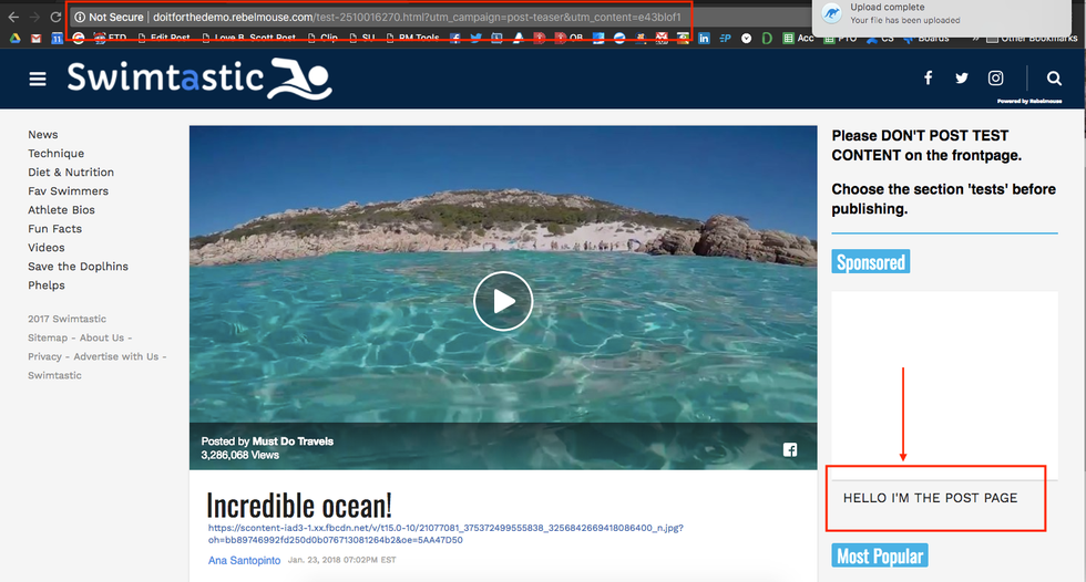 Navigating anywhere else, such as the home page or a Section Page, displays "I AM NOT A POST PAGE!" instead.