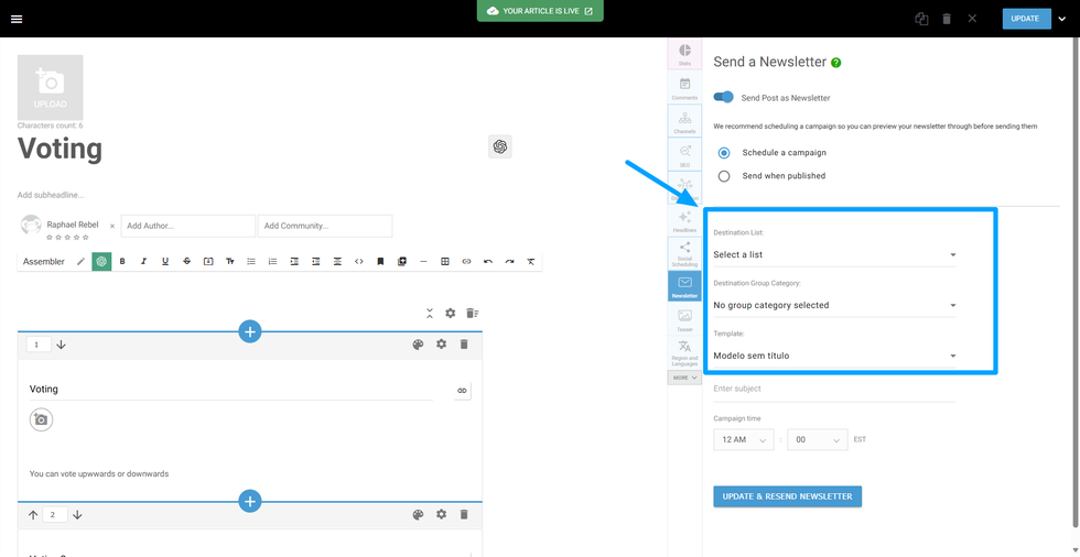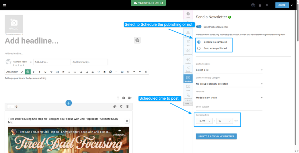 Send Newsletter on Publish or Schedule a Campaign