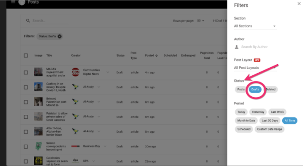 Once we get you set up, you can get started with Nordot on the RebelMouse CMS by going to your Posts dashboard and selecting "Drafts."