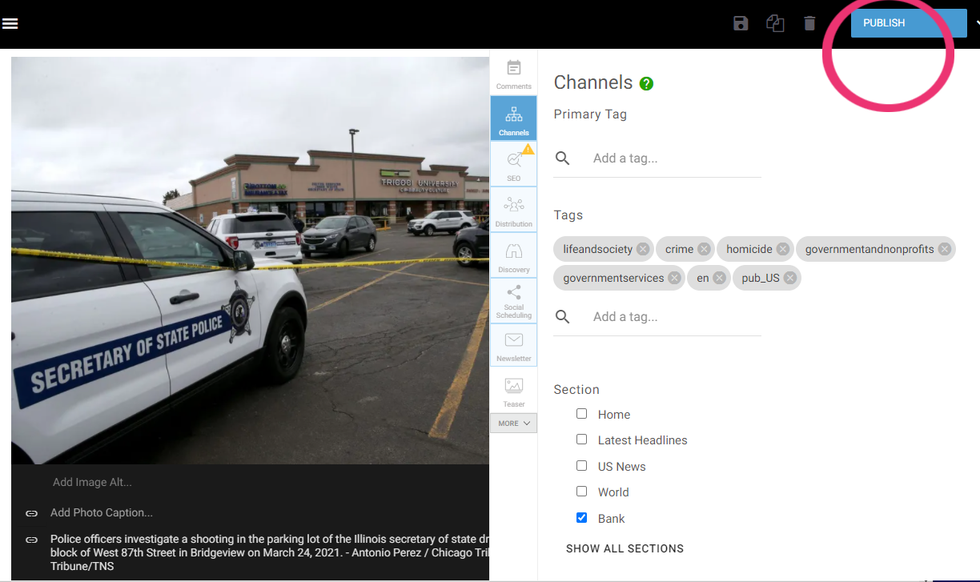 Choose the story you want to publish and publish it as normal right to your site! You can change tags or sections, too.