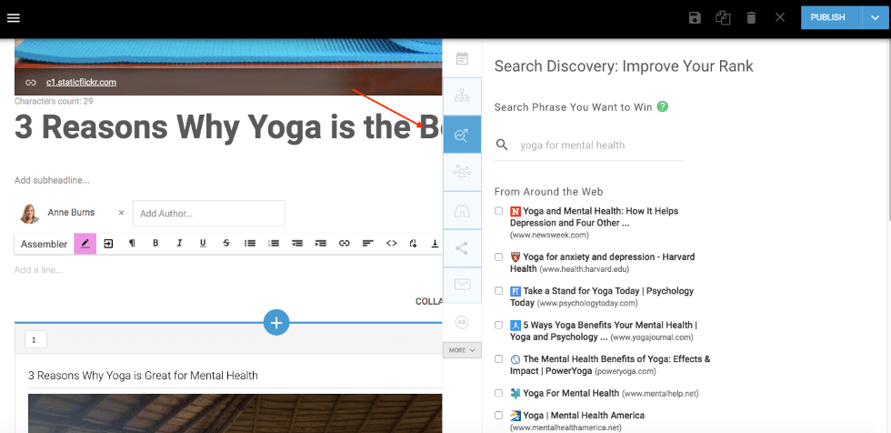 Search Discovery lets you define a search phrase you want to win, and then returns results from Google's first page for that search term. A checkbox option is provided so you can select like-minded articles that you'd like to include at the end of your post: