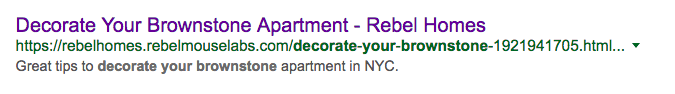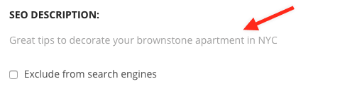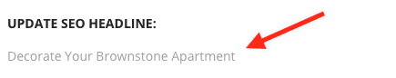 For example, you may be interested in optimizing an interior design article for the search keywords "brownstone" and "apartment." To begin, you should update the SEO Headline field in Entry Editor with those keywords: