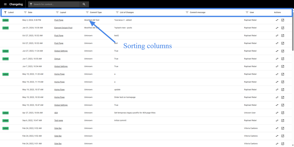 This page is a summary of all the changes made on any pages across the site. It can be sorted in many ways such as:
