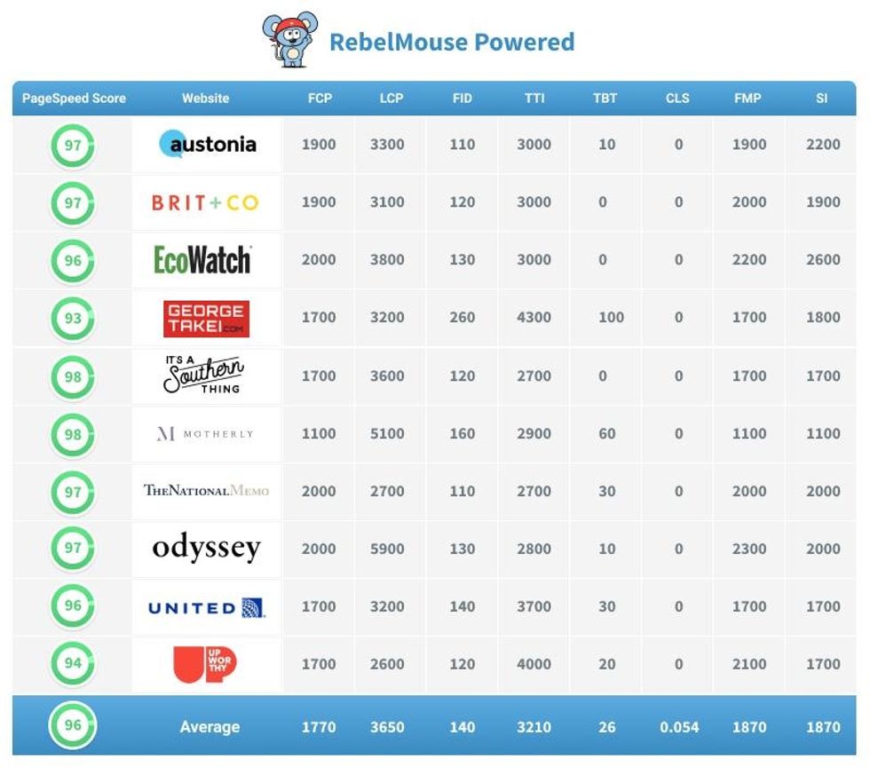 At RebelMouse, we've prioritized Core Web Vitals and Google's page experience signals for months. It's why we have some of the fastest sites on the web, particularly on the metrics that matter the most: