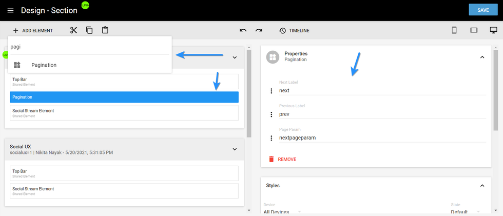 You can add pagination to section, tag, and archive pages using RebelMouse's Layout & Design Tool. This can be done through our Pagination element: