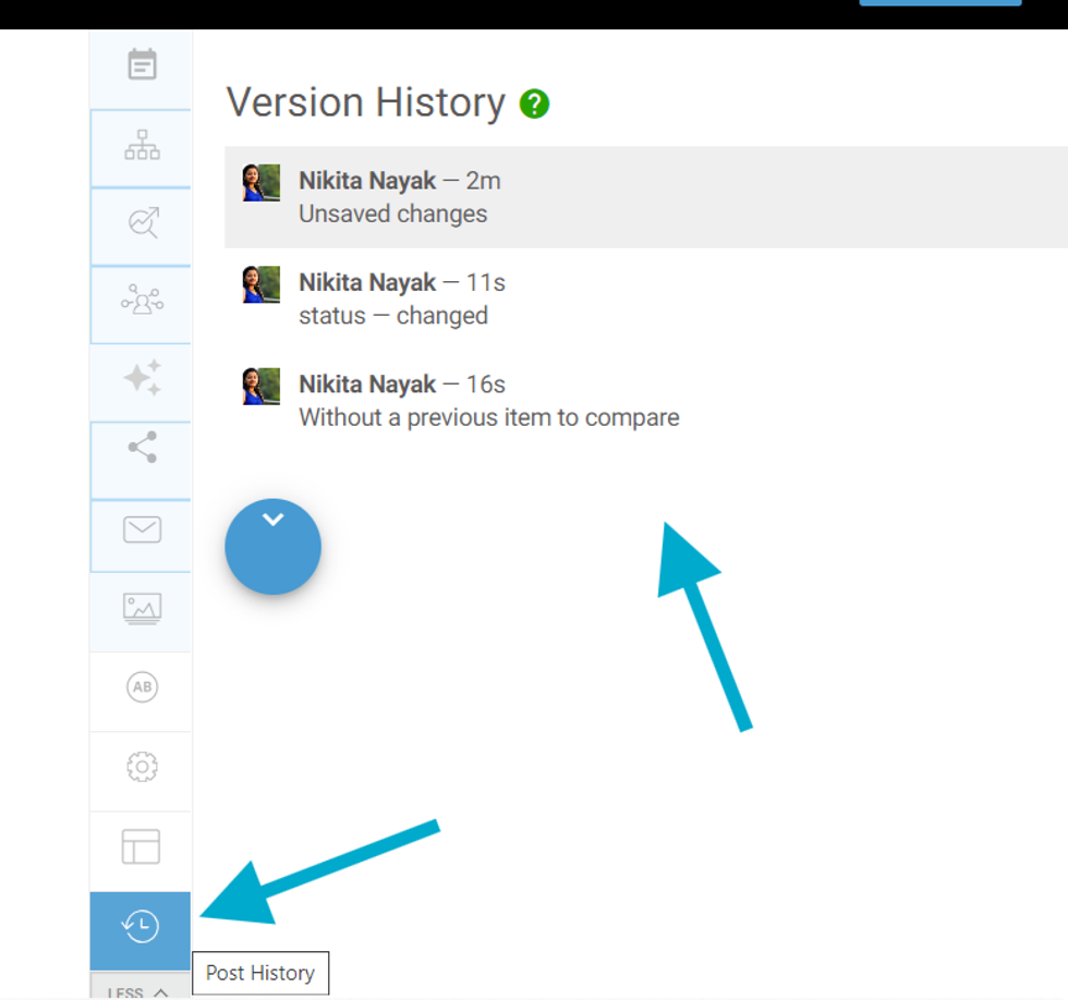 In case many changes have been made to the post, the Entry Editor will not load all at once. Instead, a circular button to Load More history logs will be available at the bottom of the list.
