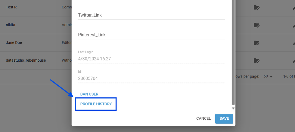 Some changes to the user can create a log and it becomes part of a history in the Profile History. To access it, you need to go to Edit > Profile History on a specific user.