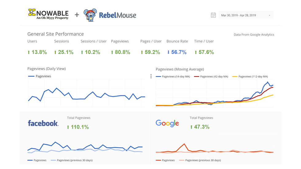 Knowable is a very successful new media client of ours. Their user engagement is at a level that leaves even us breathless. Their pages and time per user are higher than any we've ever seen before. Their growth is on a trajectory to keep climbing higher, too.