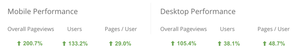 Task & Purpose is a wonderful example of a low-cost engagement that has resulted in awesome growth year over year. Their current year-to-date stats shown below, compared to the previous period, demonstrate the levels of success you can experience on RebelMouse when you focus on taking advantage of everything our platform offers. Huge tech budgets are not required to succeed.