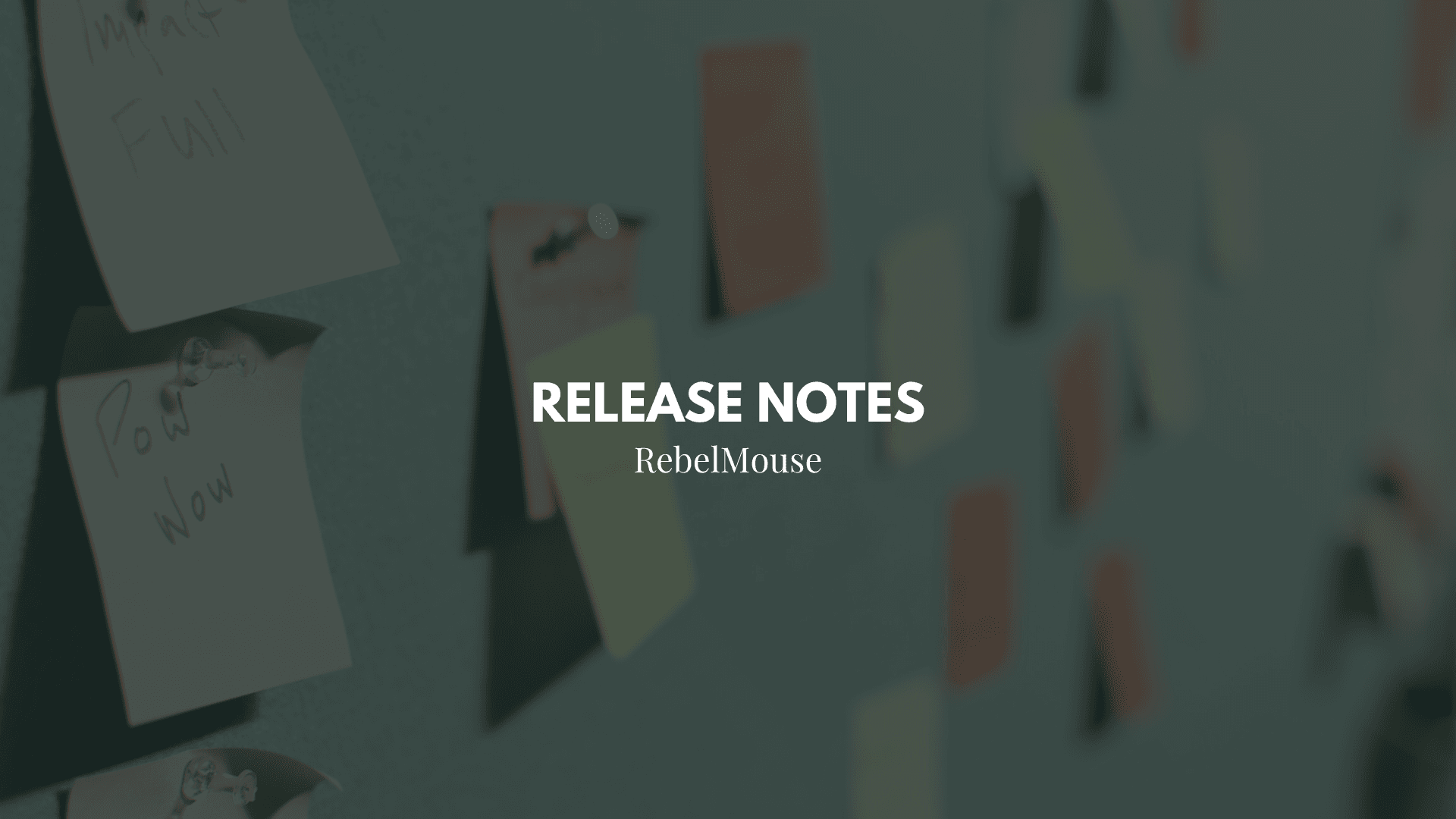 We make our release notes available so that you can keep track of every update, no matter how big or small. Click the link below to view our official, public log of every single update to the RebelMouse platform.