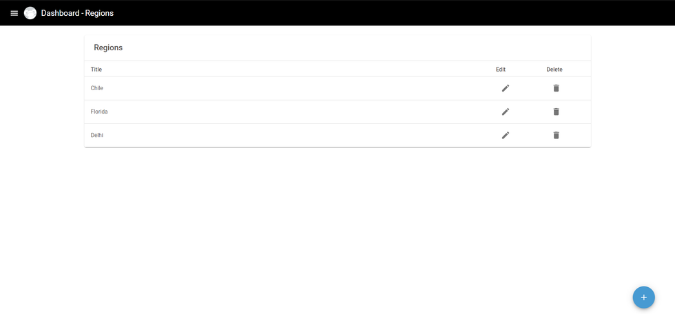 In the bottom right-hand corner, click the blue plus sign icon to create a new region. You can edit previously created regions by clicking the pencil icon next to the region under the Edit column.