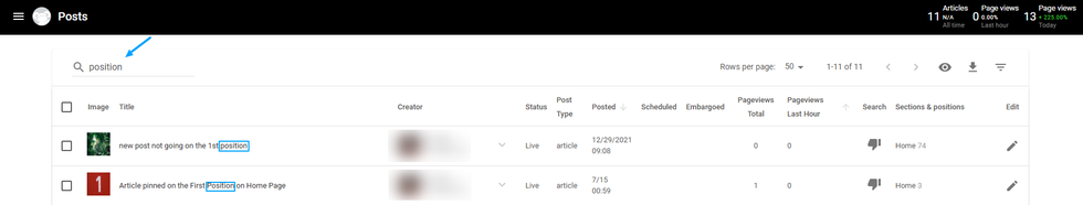 Since an article has several spaces where you can have text and information, the search algorithm is based on different weights when looking up a keyword in the posts dashboard.