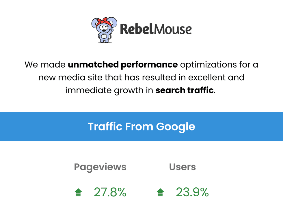 There's no denying the correlation between site performance and search. Our performance upgrades bring in huge boosts in search traffic.