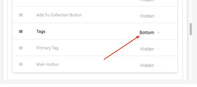 Locate the Tags element and change it from "Hidden" to an orientation that works for you, such as "Bottom":