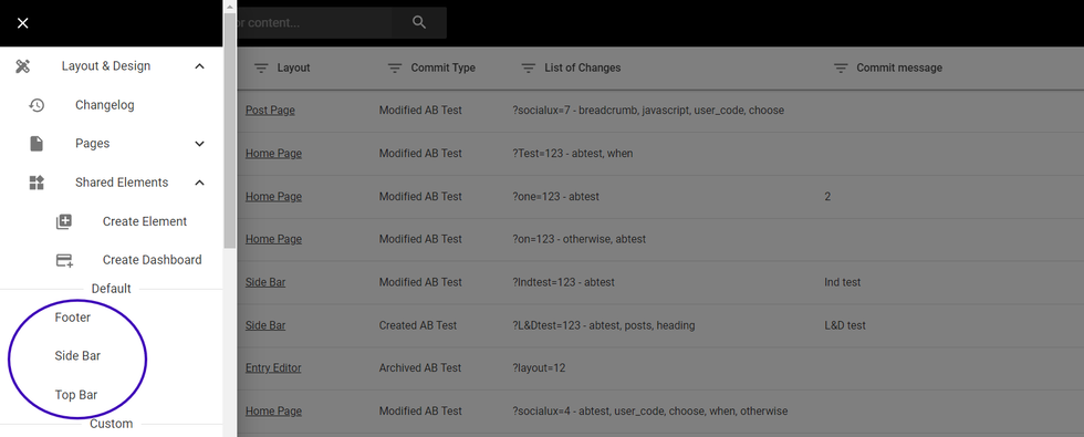 These elements can be created on L&D and shared across multiple or all Layouts. They are used to keep B-test clean and not crowded with several elements each. Accessing and editing these elements is as easy as editing any layout on L&D.