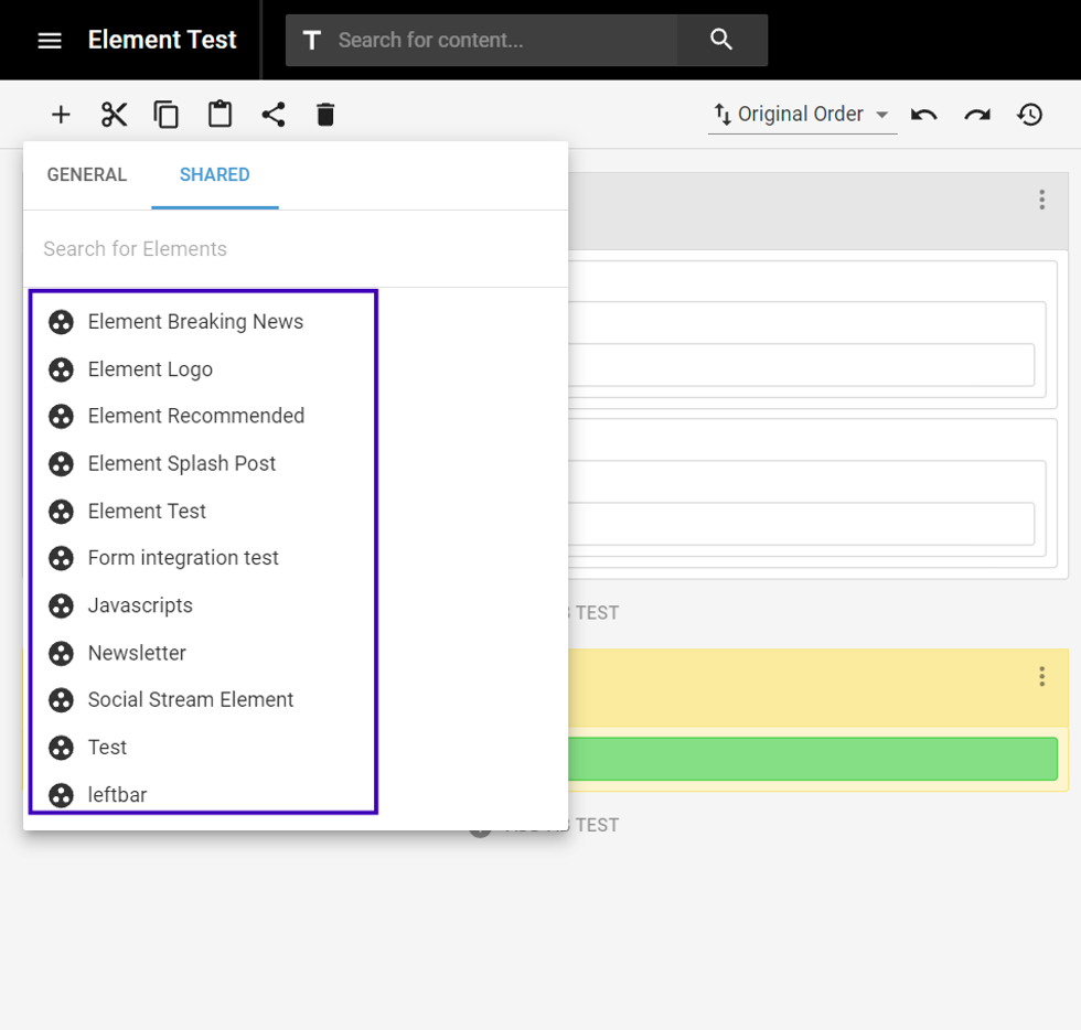 - Select “Shared” and all of the Custom Shared elements available will display. You can utilize the search option in case you have multiple Elements